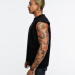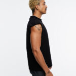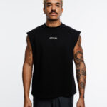 Boxy fitsleeveless tee in black made from heavyweight 100% cotton jersey printed front and back.